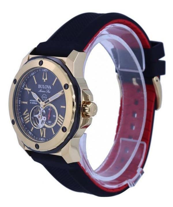 Bulova Marine Star Open Heart Black Dial Automatic Diver's 98A272 200M Men's Watch