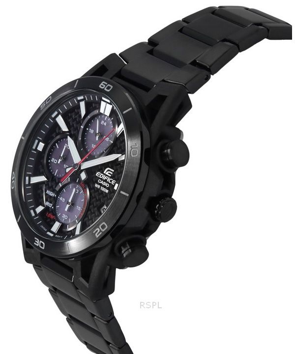 Casio Edifice Sospensione Analog Chronograph Black Ion Stainless Steel Black Dial Solar EQS-960DC-1AV 100M Men's Watch