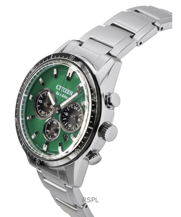 Citizen Eco-Drive Chronograph Stainless Steel Green Dial CA4624-56X 100M Men's Watch