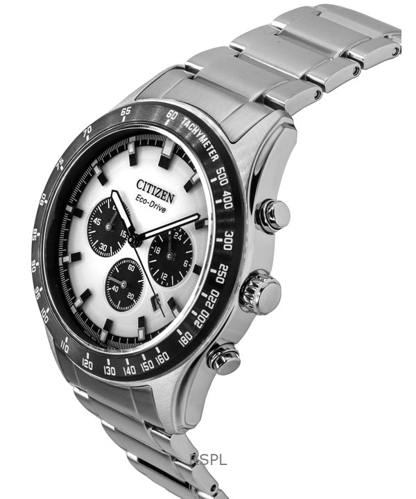 Citizen Eco-Drive Chronograph Stainless Steel White Dial CA4674-58A 100M Men's Watch