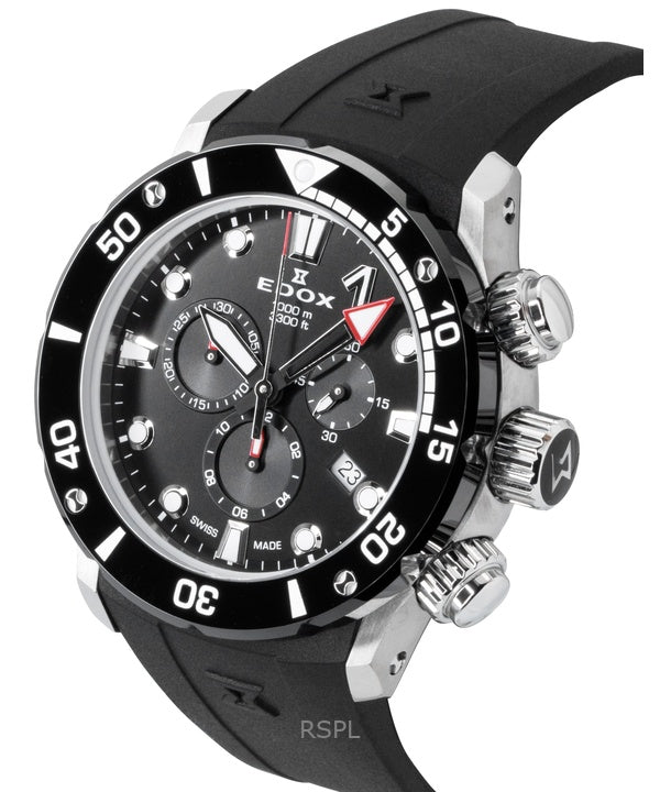 Edox CO-1 Chronograph Rubber Strap Black Dial Quartz Diver's 10242-TIN-NIN 1000M Men's Watch