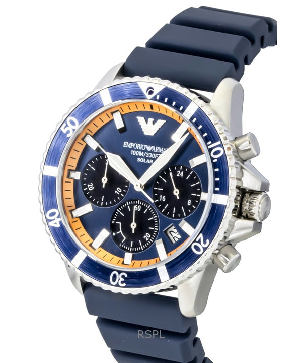Emporio Armani World Explorer Chronograph Silicone Strap Blue Dial Solar AR11696 100M Men's Watch