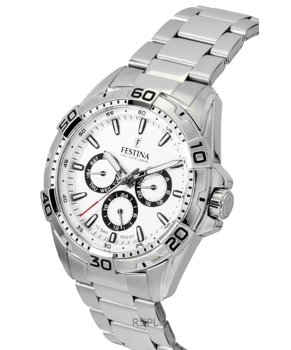 Festina Stainless Steel Multifunction White Dial Quartz F20623-1 100M Men's Watch
