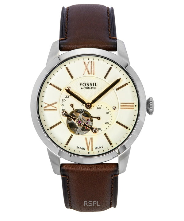 Fossil Townsman Leather Strap Open Heart Cream Dial Automatic ME3266 Men's Watch