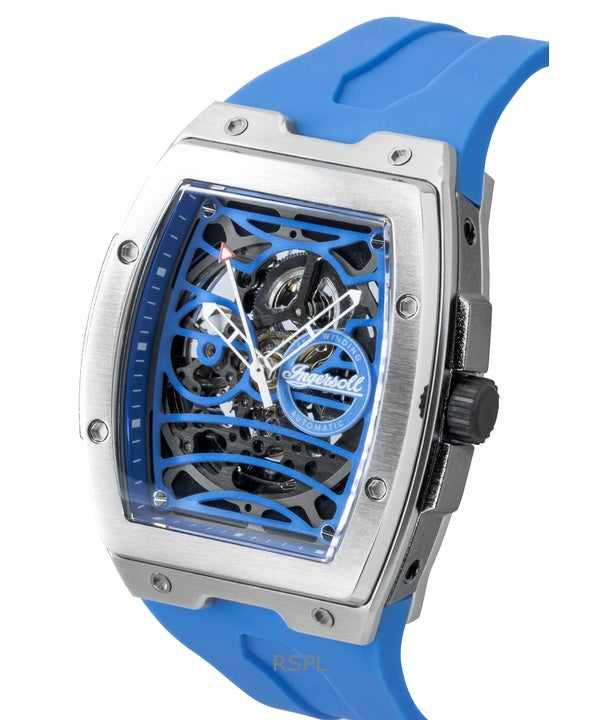 Ingersoll The Challenger Polyurethane Strap Blue Skeleton Dial Automatic I12308 Men's Watch