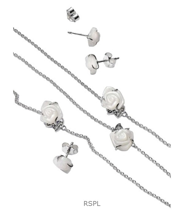 Pandora White Rose In Bloom Stud Earring With White Bioresin P-293209C01 For Women