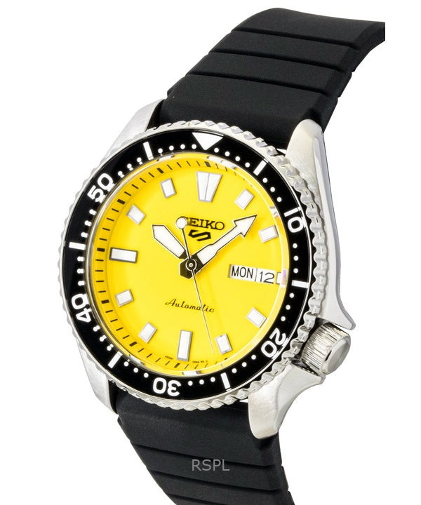 Seiko 5 Sports SKX Redux Silicone Strap Yellow Dial Automatic SRPL87K1 100M Men's Watch