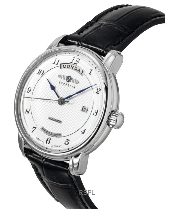Zeppelin Friedrichshafen Black Leather Strap Silver Dial Automatic 85624 Men's Watch