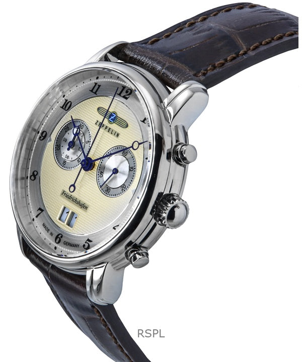 Zeppelin Friedrichshafen Chronograph Leather Strap Gold Dial Quartz 85845 Men's Watch