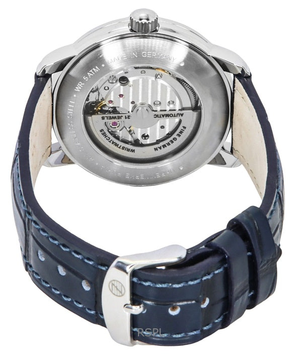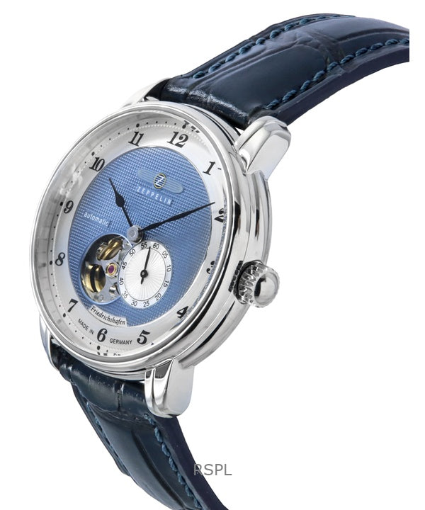 Zeppelin Friedrichshafen Leather Strap Blue Open Heart Dial Automatic 85663 Men's Watch
