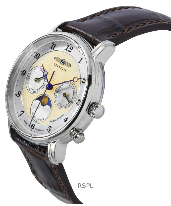 Zeppelin Friedrichshafen Leather Strap Gold Dial Quartz 85375 Women's Watch